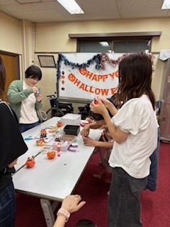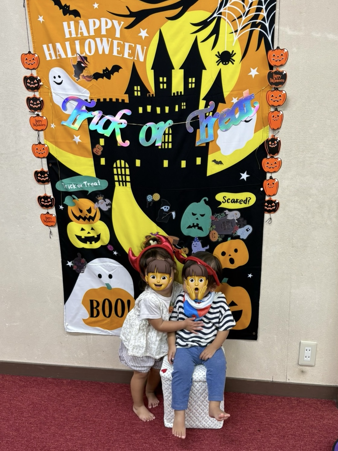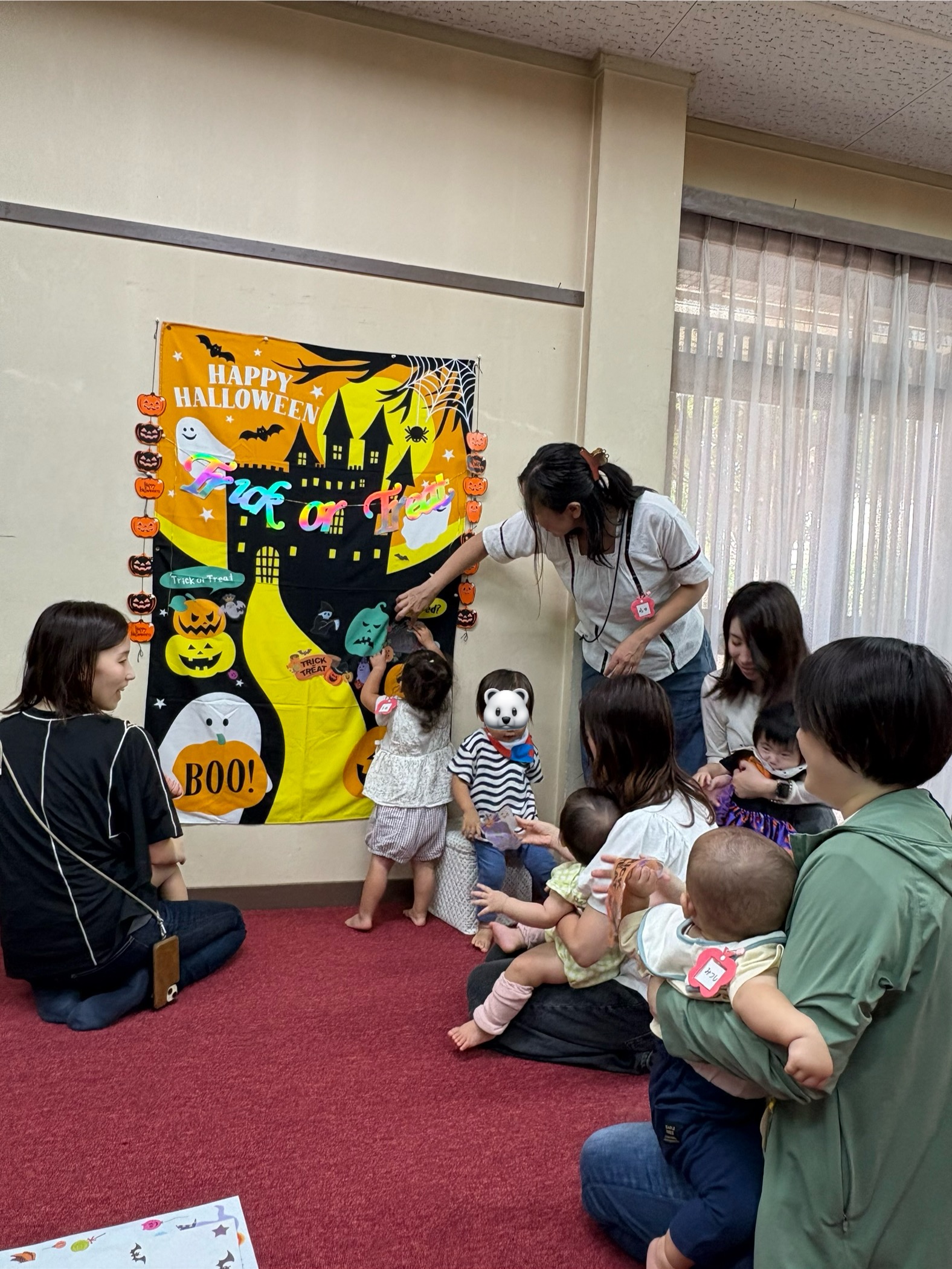 ハロウィンのタペストリーにシールを貼って 撮影会をしました。